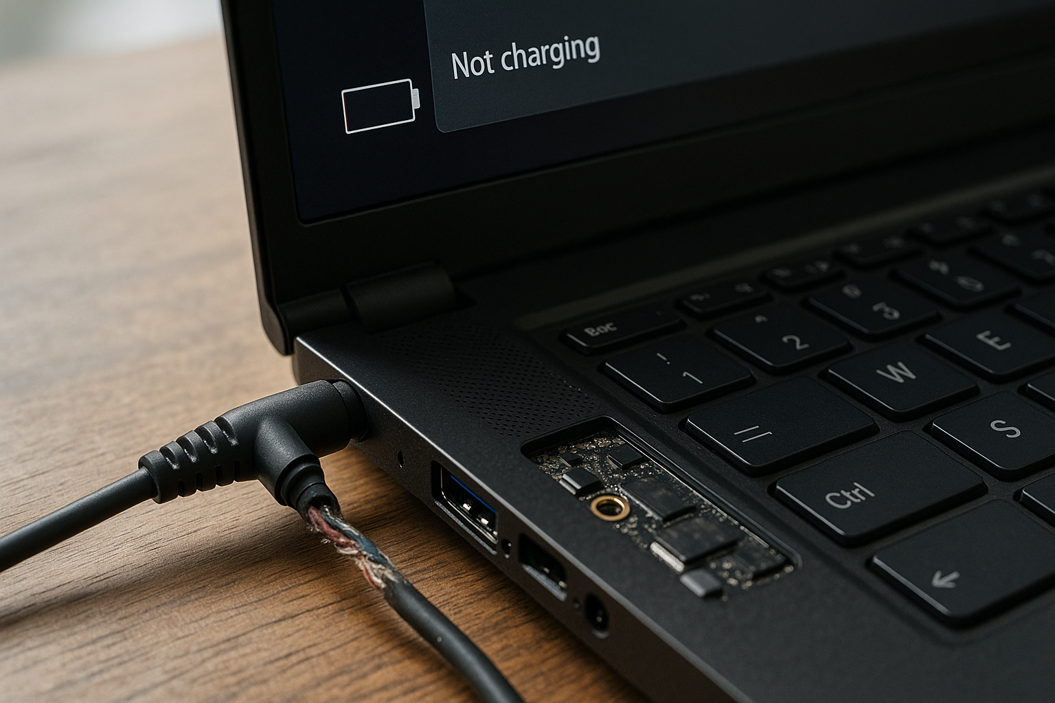 پورت شارژ به دلیل استفاده نادرست یا ضربهدیدگی ممکن است آسیب ببیند و باعث شارژ نشدن لپتاپ شود.